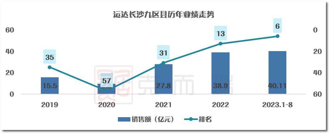 從8月單月業(yè)績來看,運達集團位于第二名,單月銷量近4億元,其原因運達會展灣二期產(chǎn)品加推與運達濱河廣場持續(xù)熱銷助力企業(yè)業(yè)績表現(xiàn)。而外運達集團在8月摘得【2023】望城區(qū)015號地,實現(xiàn)首次進駐河西,填補大澤湖片區(qū)改善空缺,后續(xù)入市將持續(xù)推升企業(yè)業(yè)績走勢。