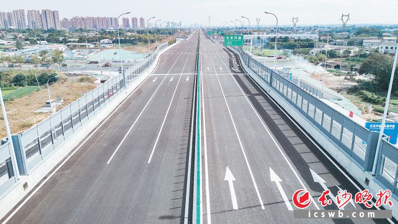會展片區(qū)拉通“五橫五縱一環(huán)”主干路網(wǎng),打通交通“主動脈”。圖為湘府東路(瀏陽河—黃興大道)項(xiàng)目,將于年內(nèi)通車。