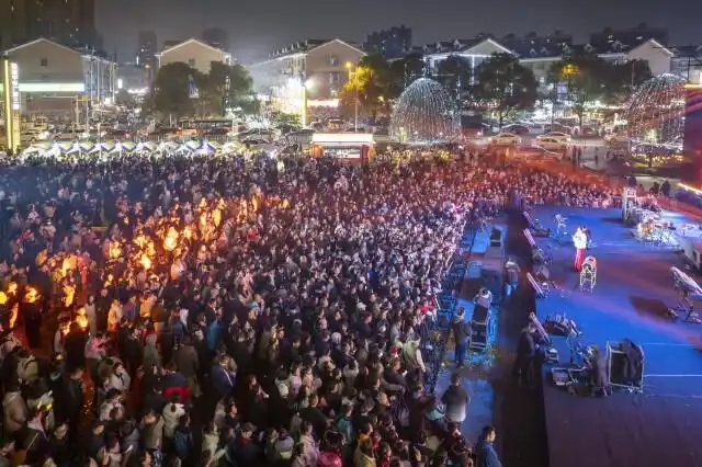 正值跨年夜,前坪廣場(chǎng)被上萬(wàn)市民游客圍得水泄不通,正中央隔出來(lái)的圓形區(qū)域中,技藝高超的非遺表演者伴隨著激昂的音樂(lè),在夜色中舞動(dòng)火壺,劃出一道道絢麗的弧線,引來(lái)陣陣喝彩。