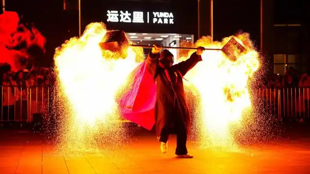 2024年12月31日晚,位于沙灣路的運達里外廣場正在上演“跨年煙火音樂節(jié)”。動感的音樂、絢爛的燈光,吸引了眾多市民。晚上9時,非遺火壺表演點燃夜空,在寒冷的冬夜為市民和游客帶來別樣的視覺盛宴。